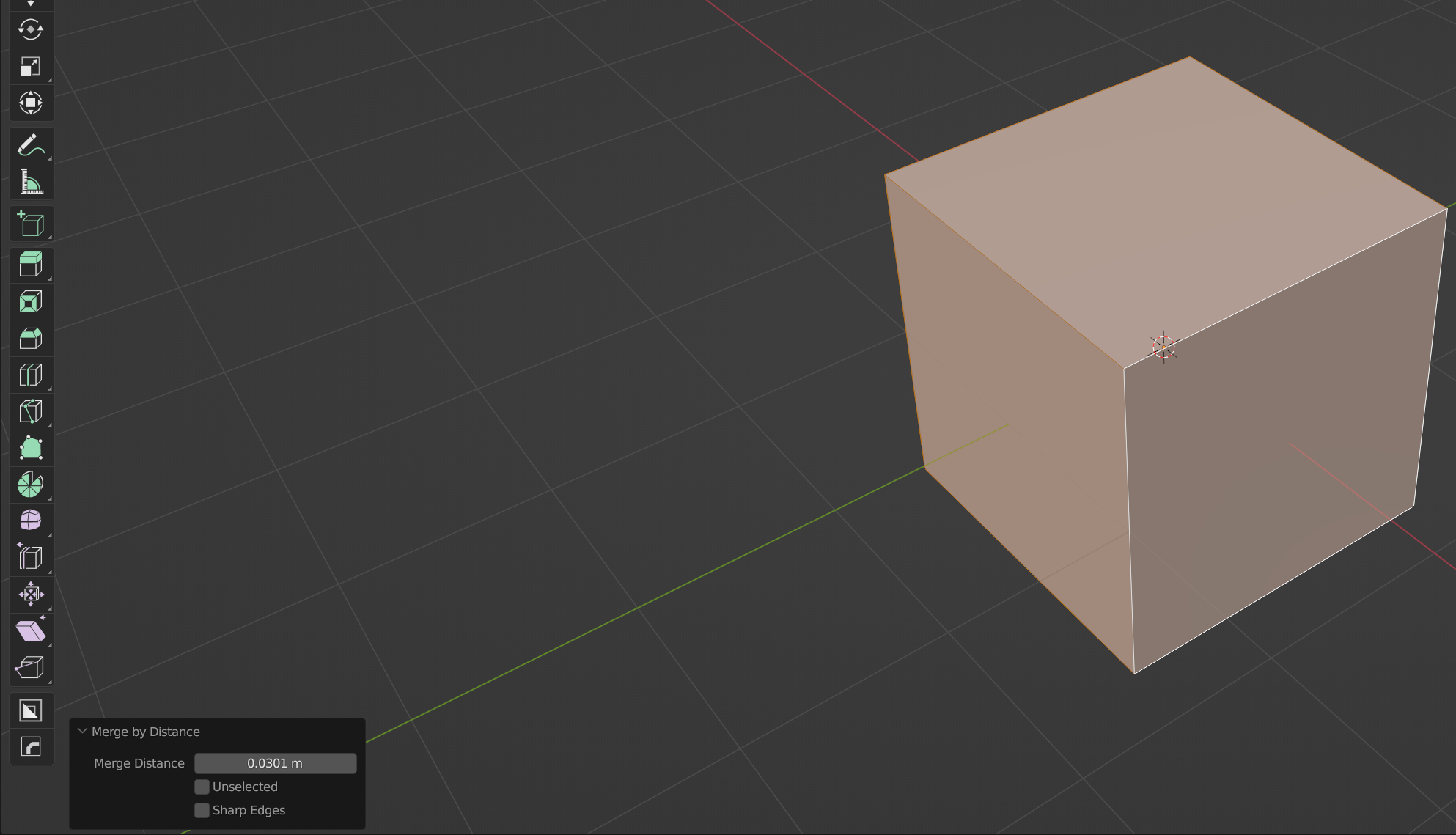 1. Edit mode에서 중복을 제거하고자 하는 오브젝트를 전체 선택한 후 Mesh>Clean Up>Merge by Distance를 클릭.