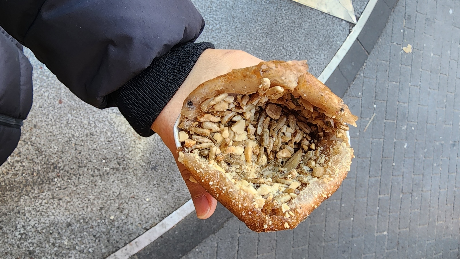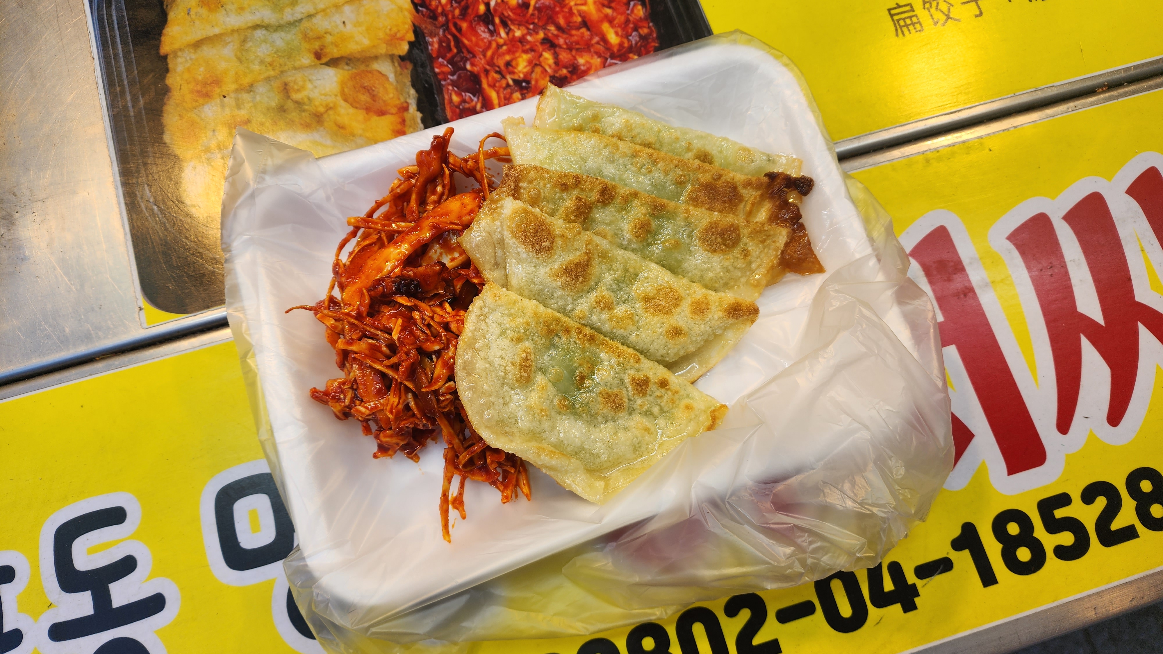 돈받는사람, 호떡을 굽는사람, 완성된 호떡에 씨앗을 넣는사람. 3인 1조의 완벽한 팀워크이다.