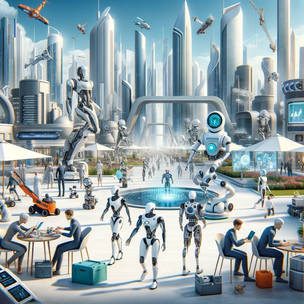 [ 모든 직업을 로봇이 대체한 사회를 그려줘 ]