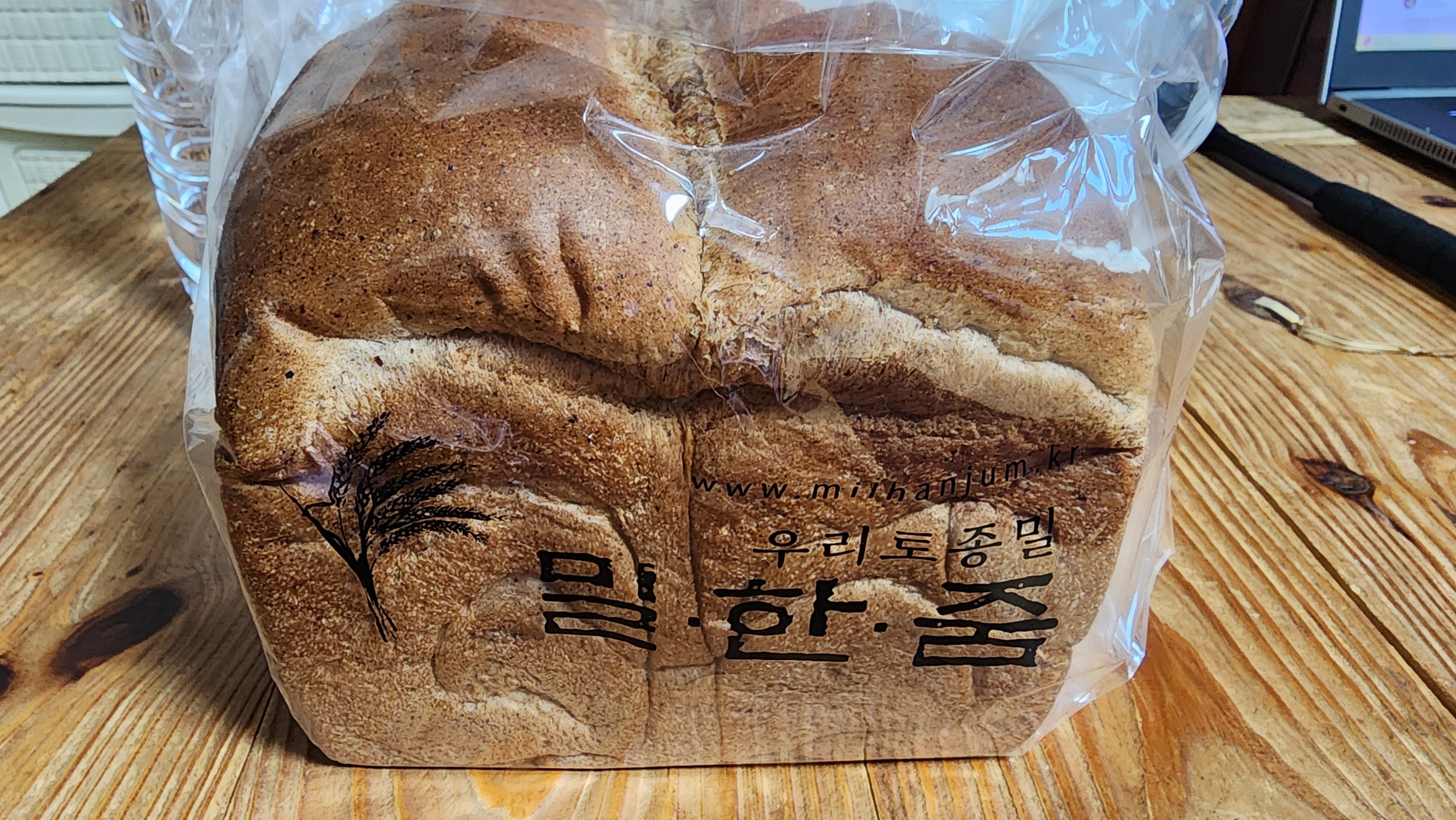 흑미식빵 10500원우리쌀로 만든 쫀득쪽득한강력추천온천천 카페거리 올리브장작 옆에 있음