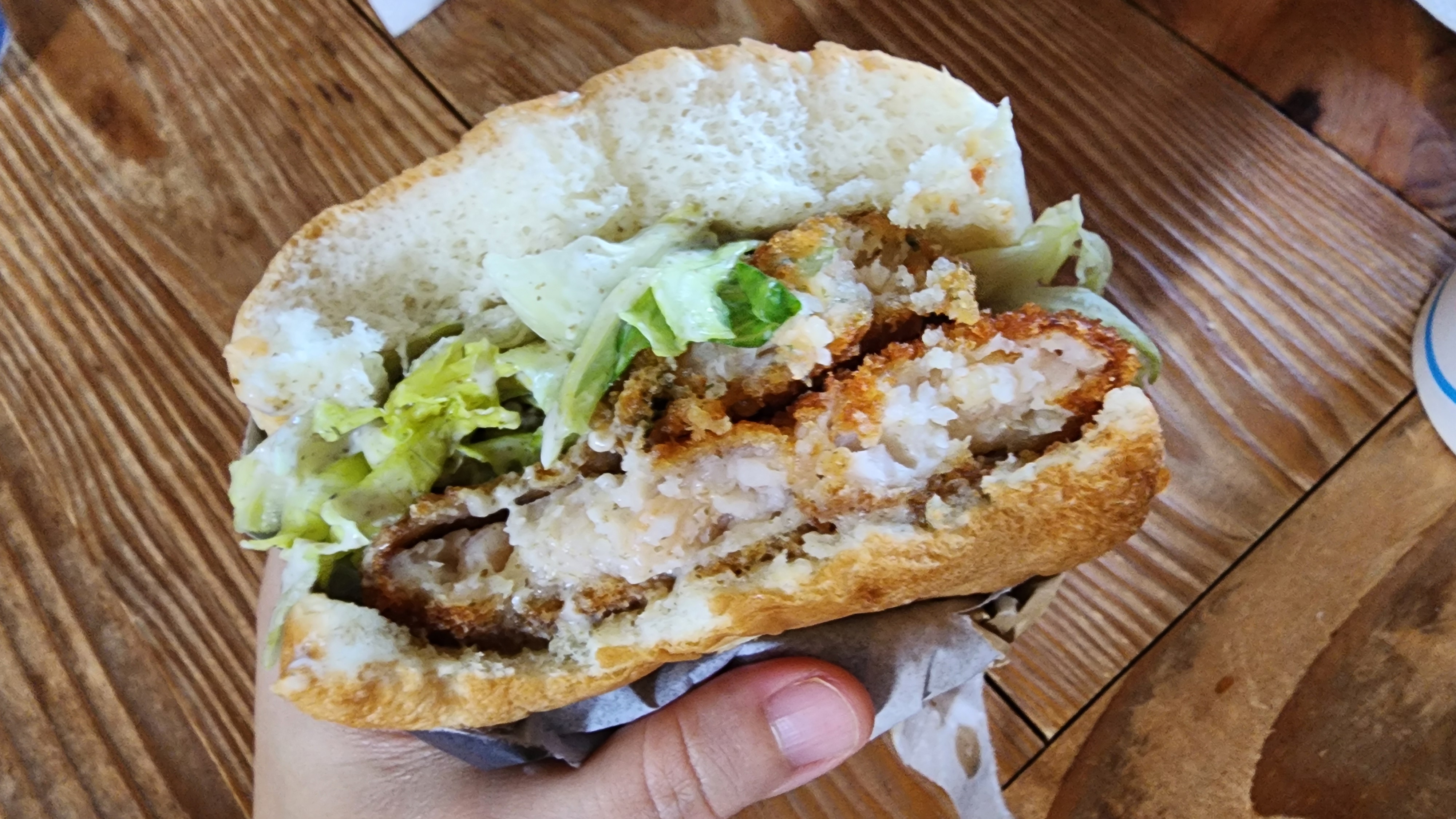 자극적이지 않은 은근한 풍미. 바삭바삭한 패티와 새우.