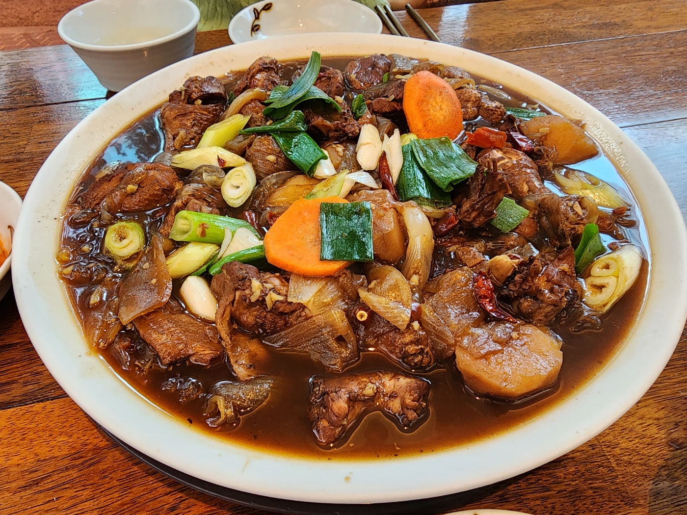 메뉴를 살펴보니 봉추찜닭의 소자는 2명이 먹기에는 적은 것 같고 중간 사이즈를 시켜야 좀 남더라도 넉넉할 것 같아 고민 없이 주문했답니다. 함께 나오는 공기밥과 함께 먹으니, 그 풍부한 맛과 향이 입안 가득 퍼져나갔어요. 저의 미각 후각이 상실되었지만, 봉추찜닭의 매콤하고 짭짤한 식감은 여전히 즐기기 충분했어요. 밥은 약간 진 편이었지만, 그래도 입안에서 맛과 향이 잘 어우러져 만족스러웠답니다.