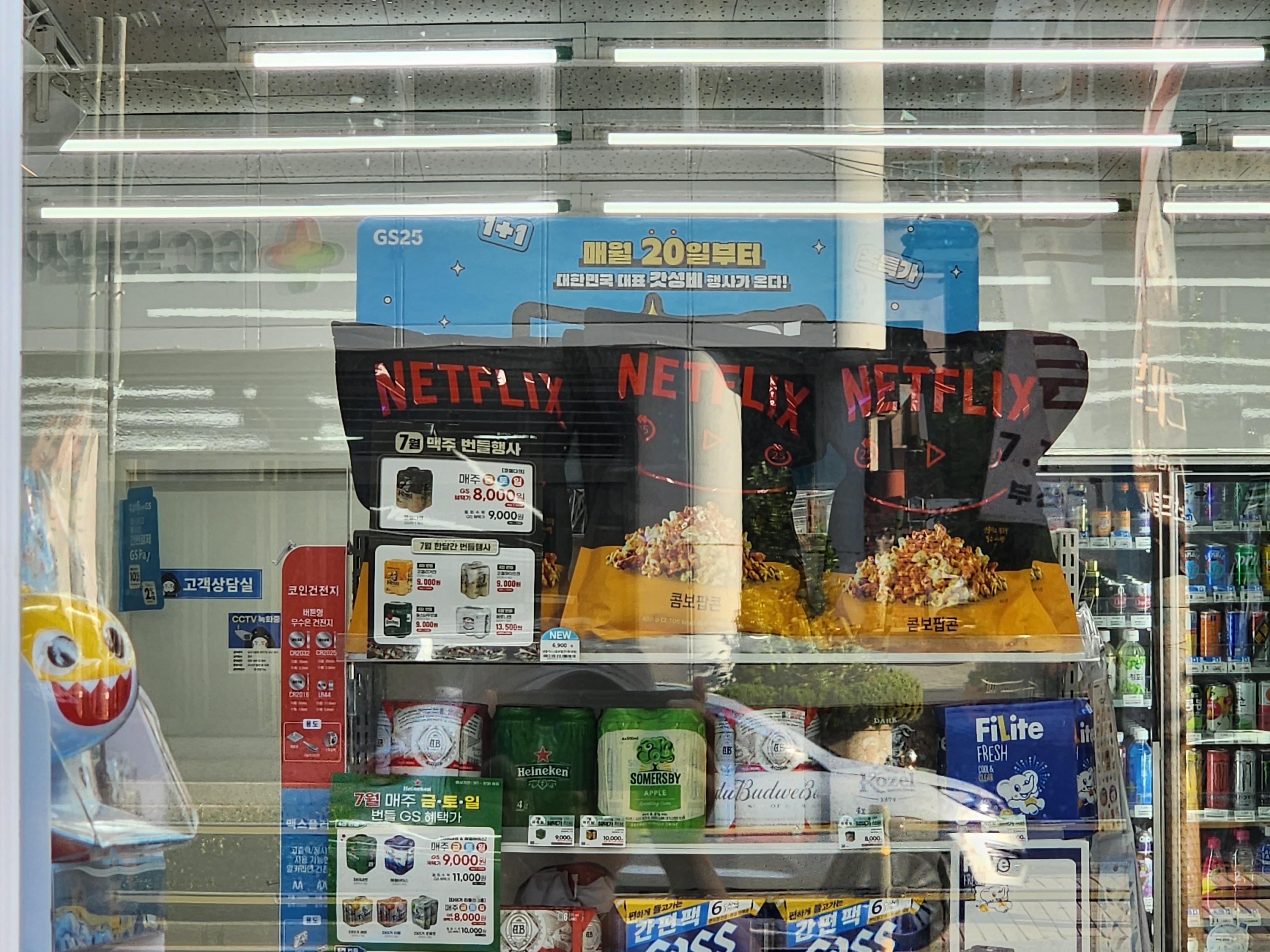 GS25를 지나가는데 넷플릭스 팝콘을 발견했다. 정말 흥미로운 제품이었다. 넷플릭스 구독을 해지한 지 꽤 시간이 지났는데, 이 팝콘을 보고 다시 구독하고 싶다는 생각이 들었다.