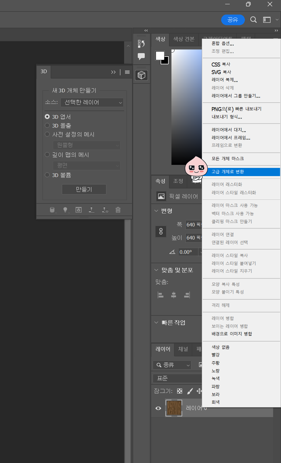 1. 우선 포토샵으로 불러온 이미지를 편집을위해 고급개체로 변환합니다.