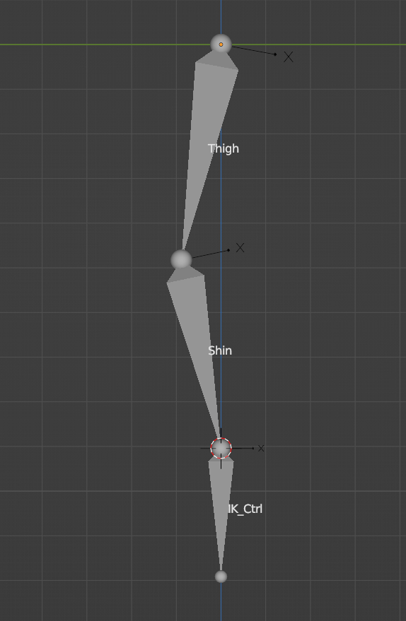 4. 이때 핵심은 IK_Ctrl을 추가할때, Shin의 꼬리부분에 3D커서를 옮기고 Shift+A로 IK_Ctrl을 추가해줘야합니다. Extrude로 만들어주면 Constraint걸어도 작동이 안되니까 주의바랍니다.