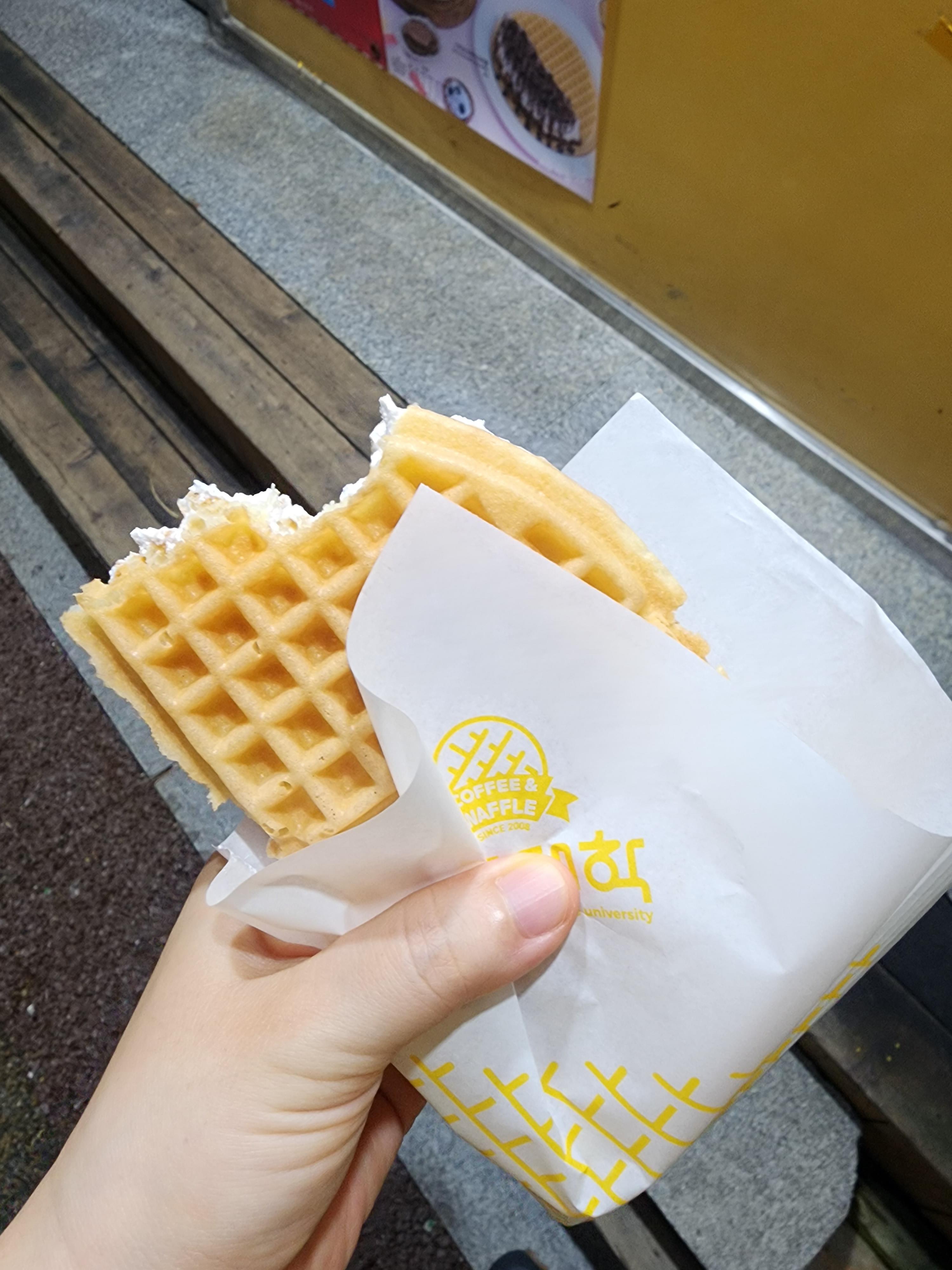 어렸을때 하루용돈 1000원 받으면 500원 주고 사먹던 와플. 고사리손에 쥔 거금 500원으로 사먹던...지금은 3000원이다. 세월이 많이 흘러 입맛도 많이 변했지만 와플만큼은 아직 맛있다.