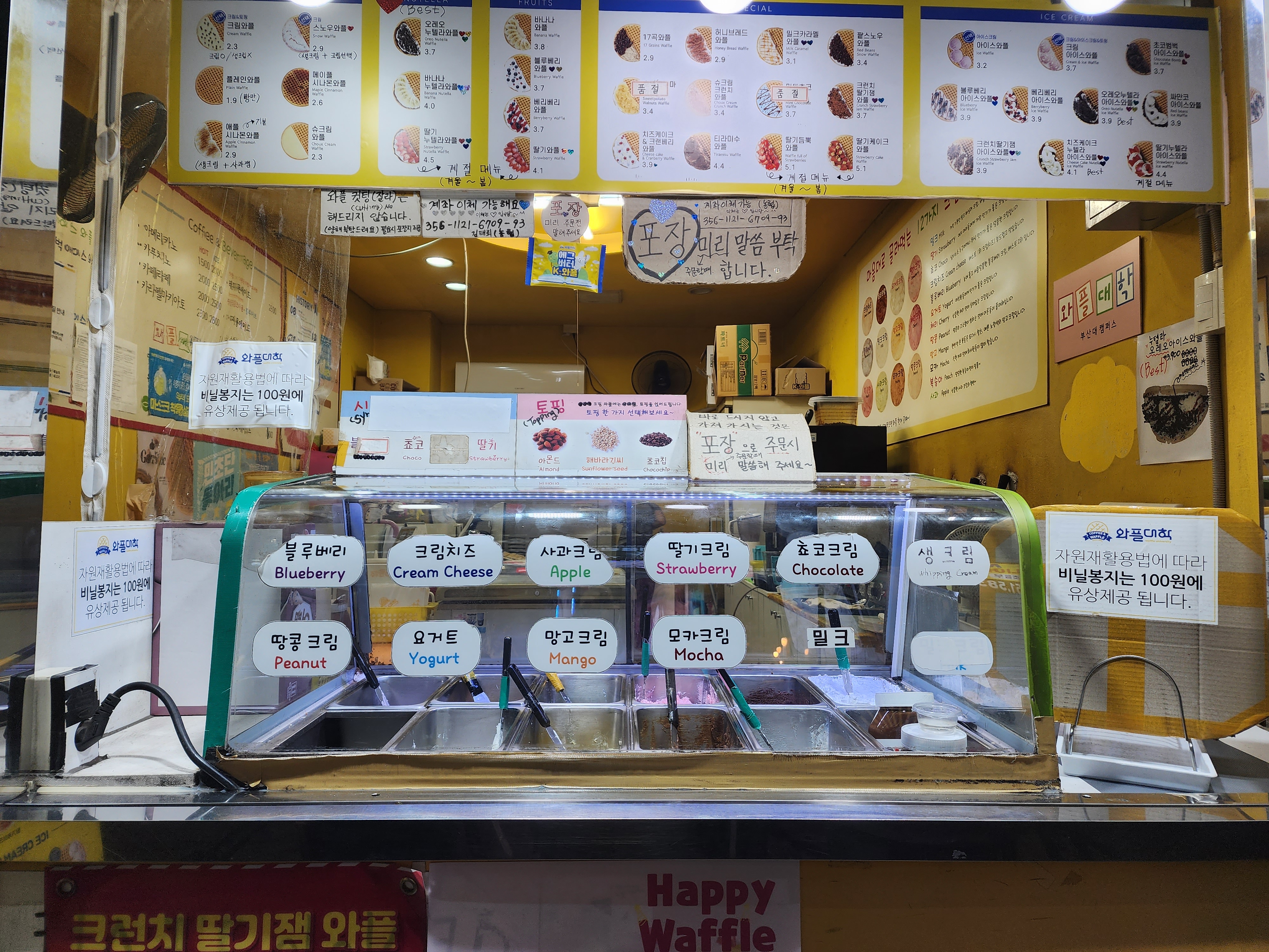 어렸을때 하루용돈 1000원 받으면 500원 주고 사먹던 와플. 고사리손에 쥔 거금 500원으로 사먹던...지금은 3000원이다. 세월이 많이 흘러 입맛도 많이 변했지만 와플만큼은 아직 맛있다.