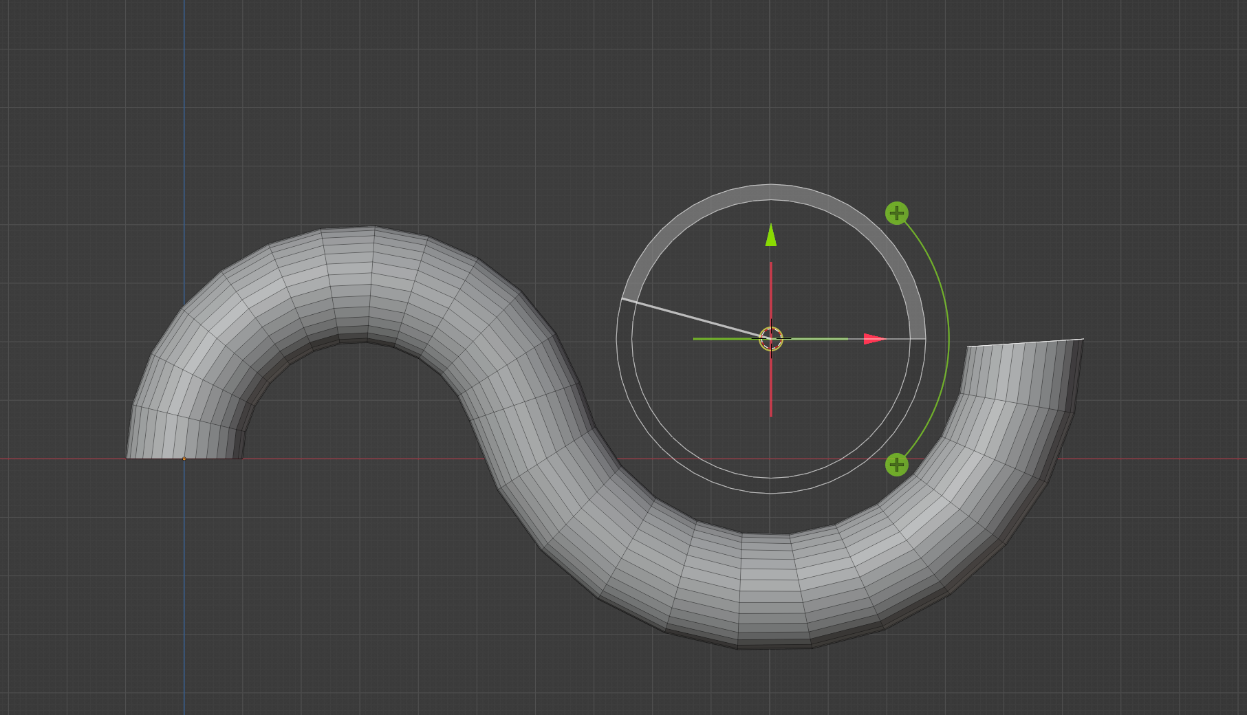 5. 구불구불한 형상을 만들기위해서는 (커서를 이동하여)회전중심점을 변경해서 오브젝트를 만들어줍니다.