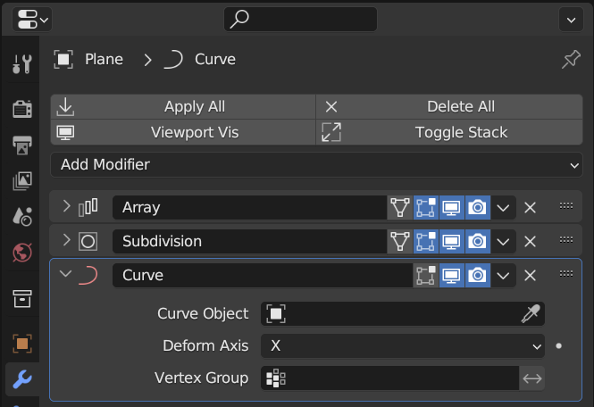 8. Curve Modifier를 적용한다.