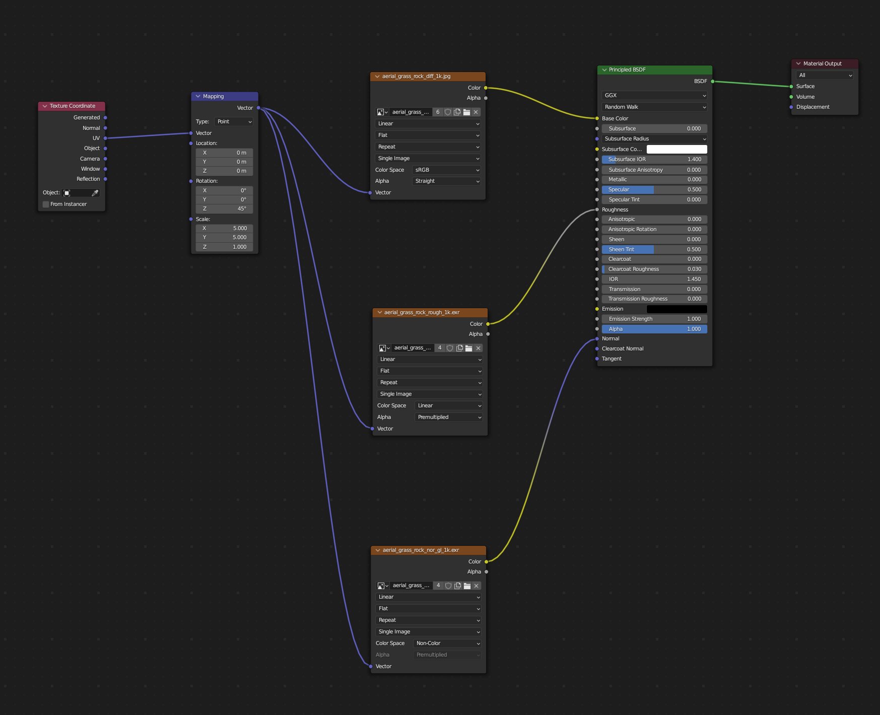 위에 생성한 노드를 중복으로 생성하고, 각 그룹의 Mapping 노드의 Rotation과 Scale을 다르게 조정합니다.